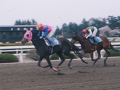 ゴール前で、逃げるキョクイチダーリンを捕らえる、セイエイシェーン!